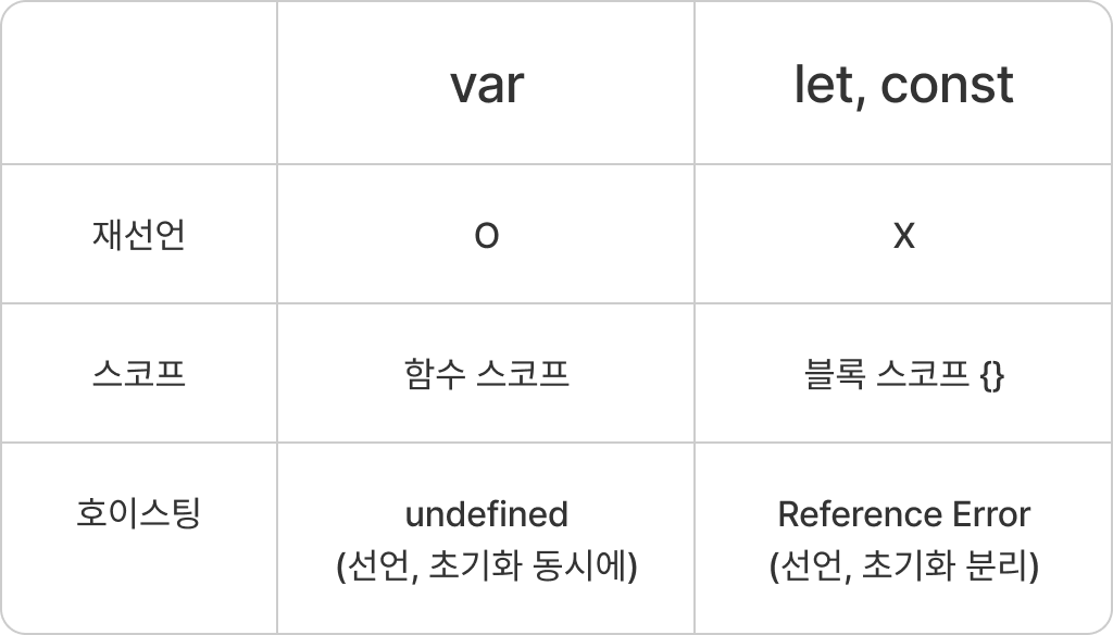 - 선언과 초기화 분리 ➔ 변수 호이스팅하면 Reference Error