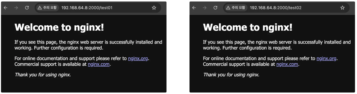 curl http://192.168.64.8:2000/test01 # 포트포워딩