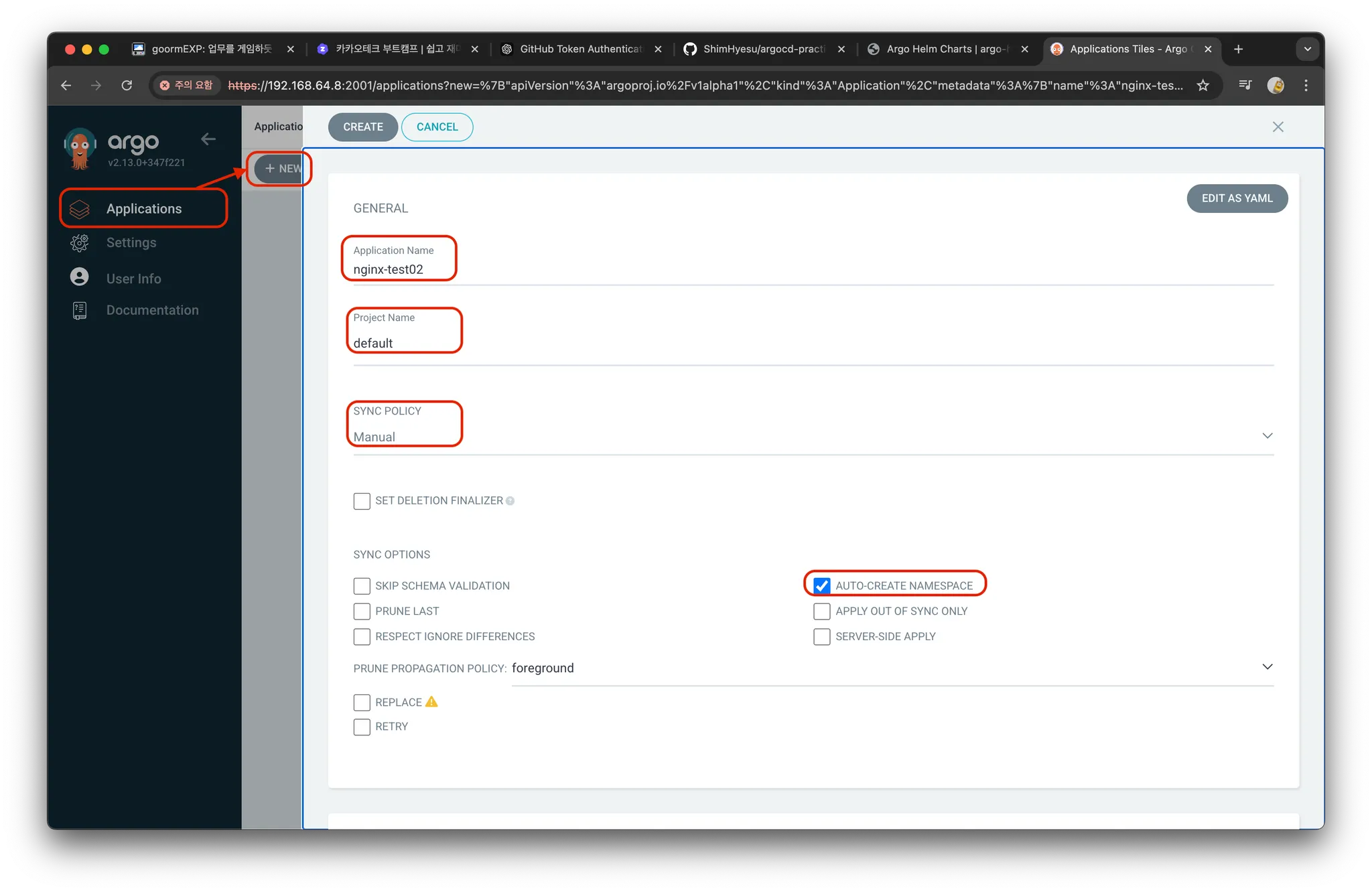 사전 세팅 : Github repo 생성 → argocd-practice
